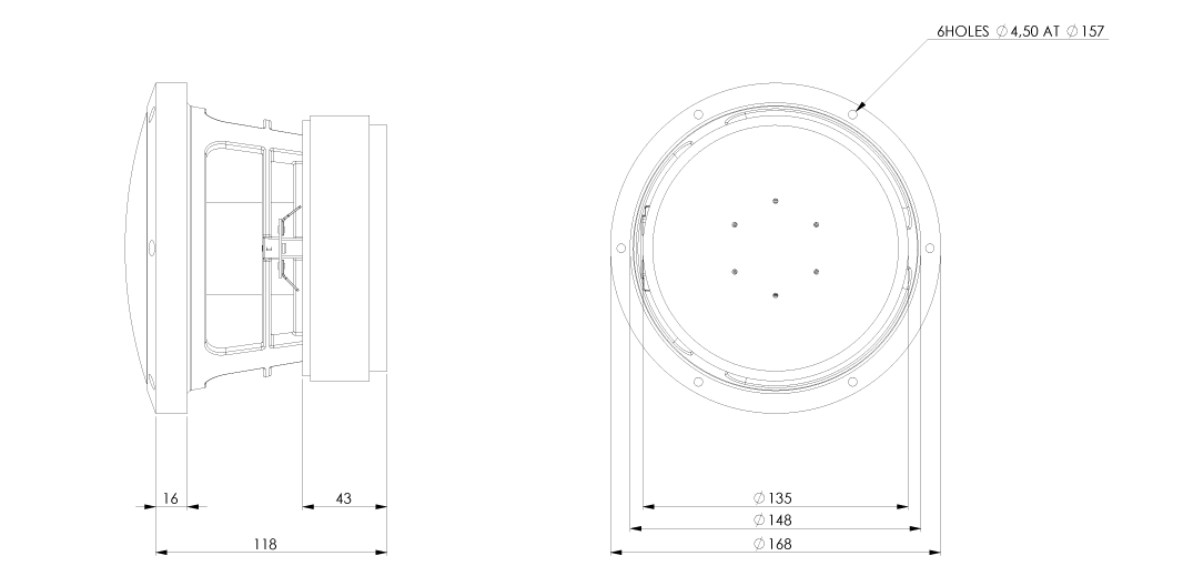 The AS168-9-470 is an 7 inch bass driver with aluminum honeycomb sandwich dome, being the first in an entirely new approach to accuton speaker design. An ideal acoustical center has been achieved, which is identical with our CELL tweeters and midranges. Its novel designed overhung motor combines the advantages of traditional over- and underhung designs, delivering high linear excursion and ultra low distortion. An exceptionally hard aluminum sandwich dome was developed for the CELL bass drivers that allows for negligible delay and energy storage. The hidden surround serves for reduced outer diameter and linear excursion of +/- 16mm. A new developed spider shape makes huge excursion without compression possible.