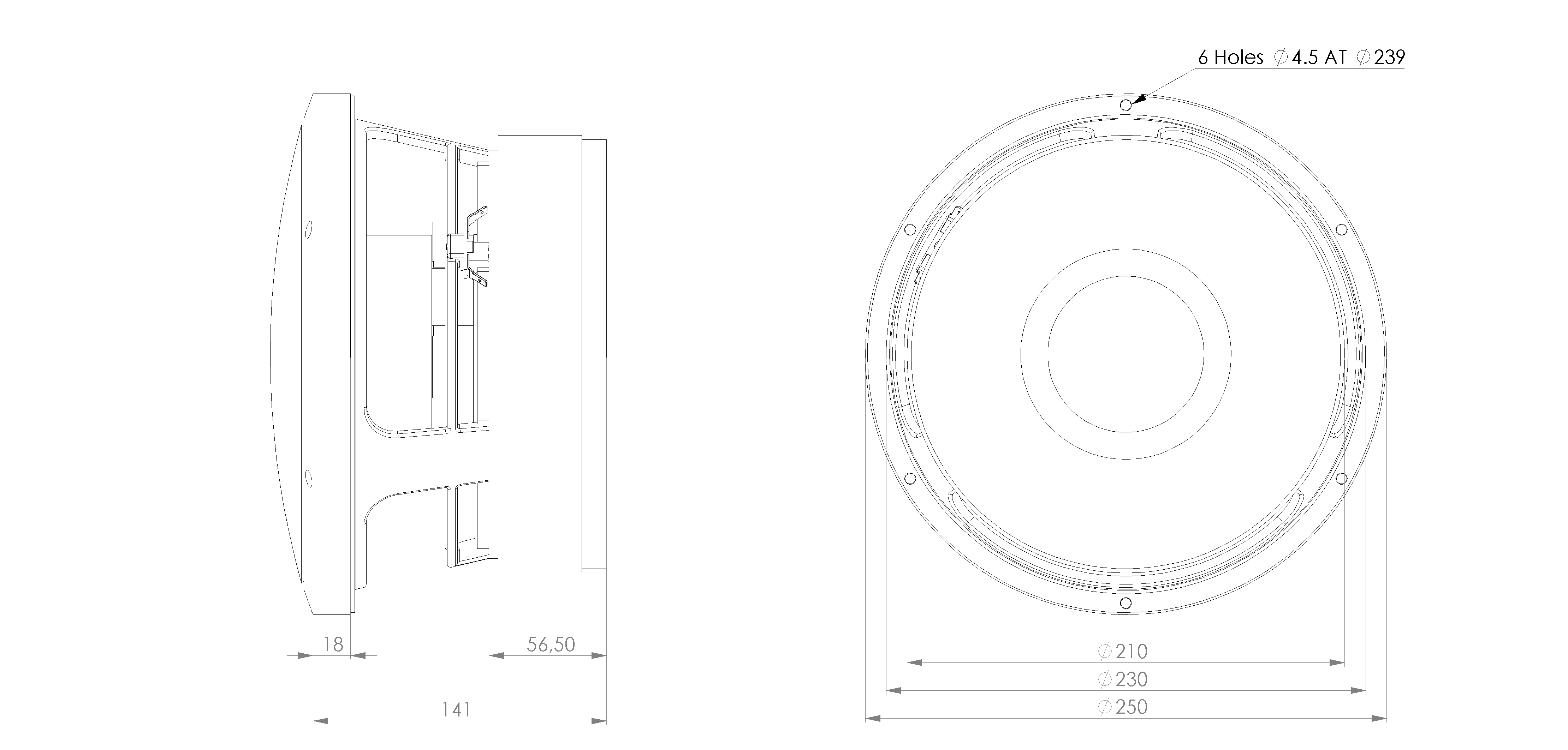 The AS250-8-552 is an 11 inch bass driver with aluminum honeycomb sandwich dome, being the first in an entirely new approach to accuton speaker design. An ideal acoustical center has been achieved, which is identical with our CELL tweeters and midranges. Its novel designed overhung motor combines the advantages of traditional over- and underhung designs, delivering high linear excursion and ultra low distortion. An exceptionally hard aluminum sandwich dome was developed for the CELL bass drivers that allows for negligible delay and energy storage. The hidden surround serves for reduced outer diameter and linear excursion of +/- 16mm. A new developed spider shape makes huge excursion without compression possible.