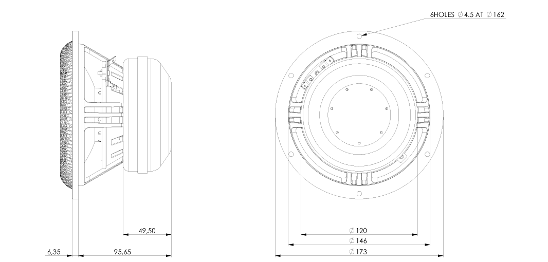 Big, underhung 120mm Neodymium magnet system for very low distortion.