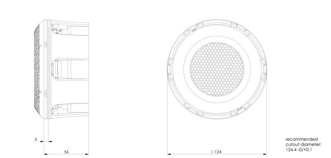 | Cutout diameter | 124.4 | mm | |
