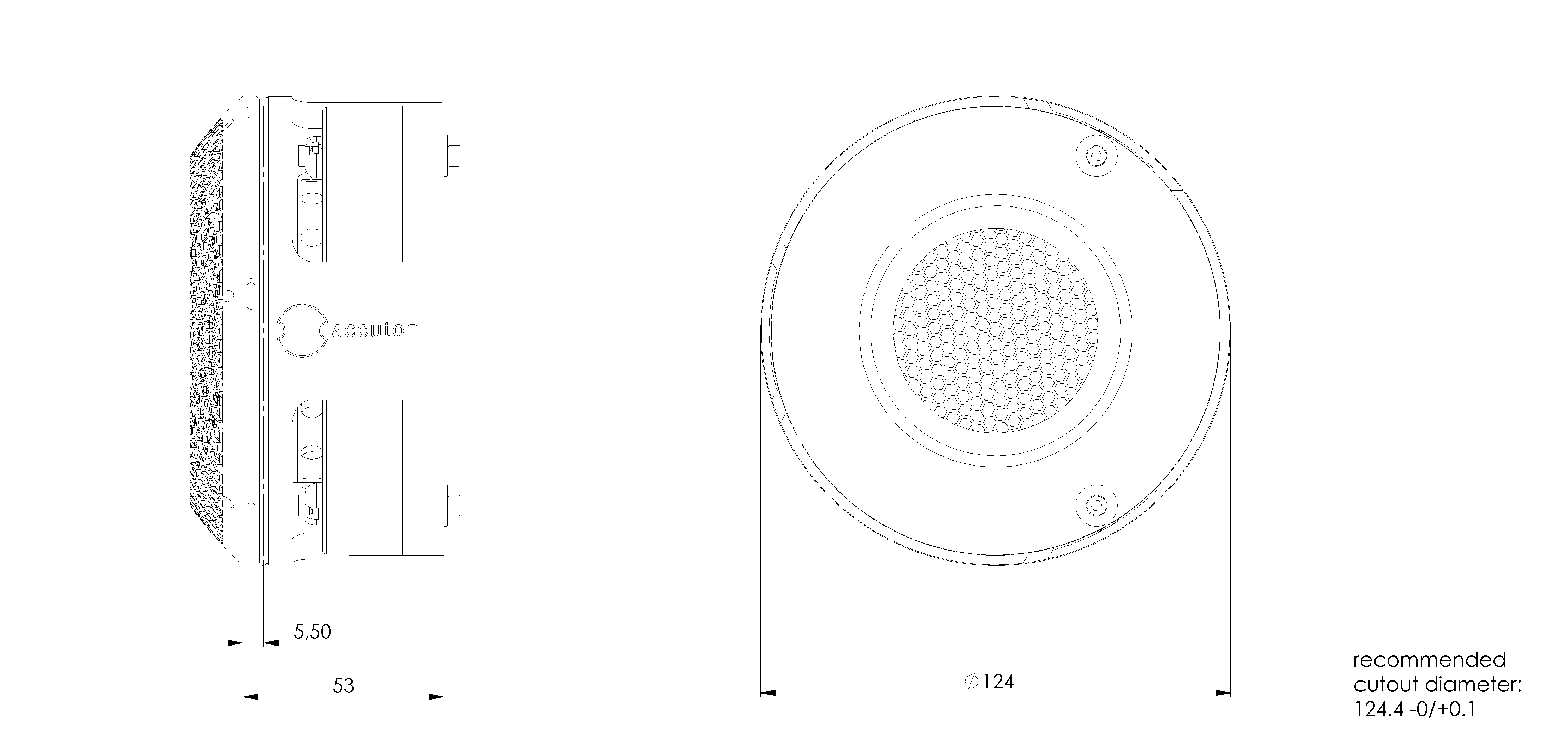 | Cutout diameter | 124.4 | mm | |