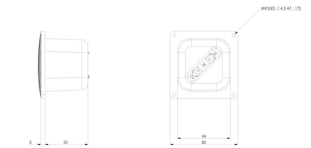 | Cutout Diameter/Square | 64 mm x 64 MM |